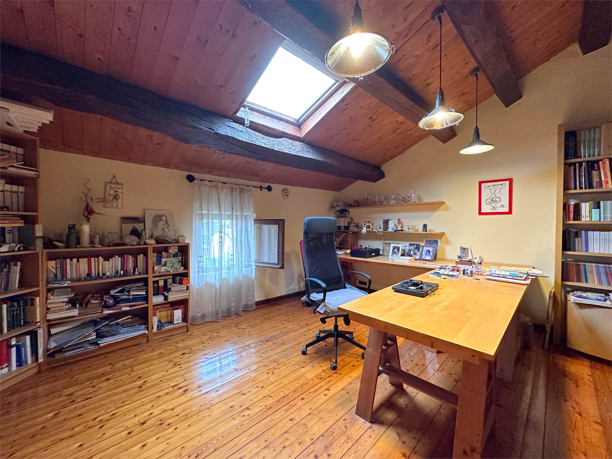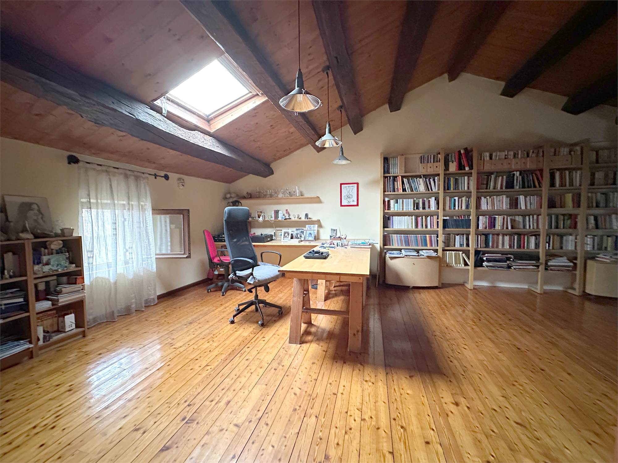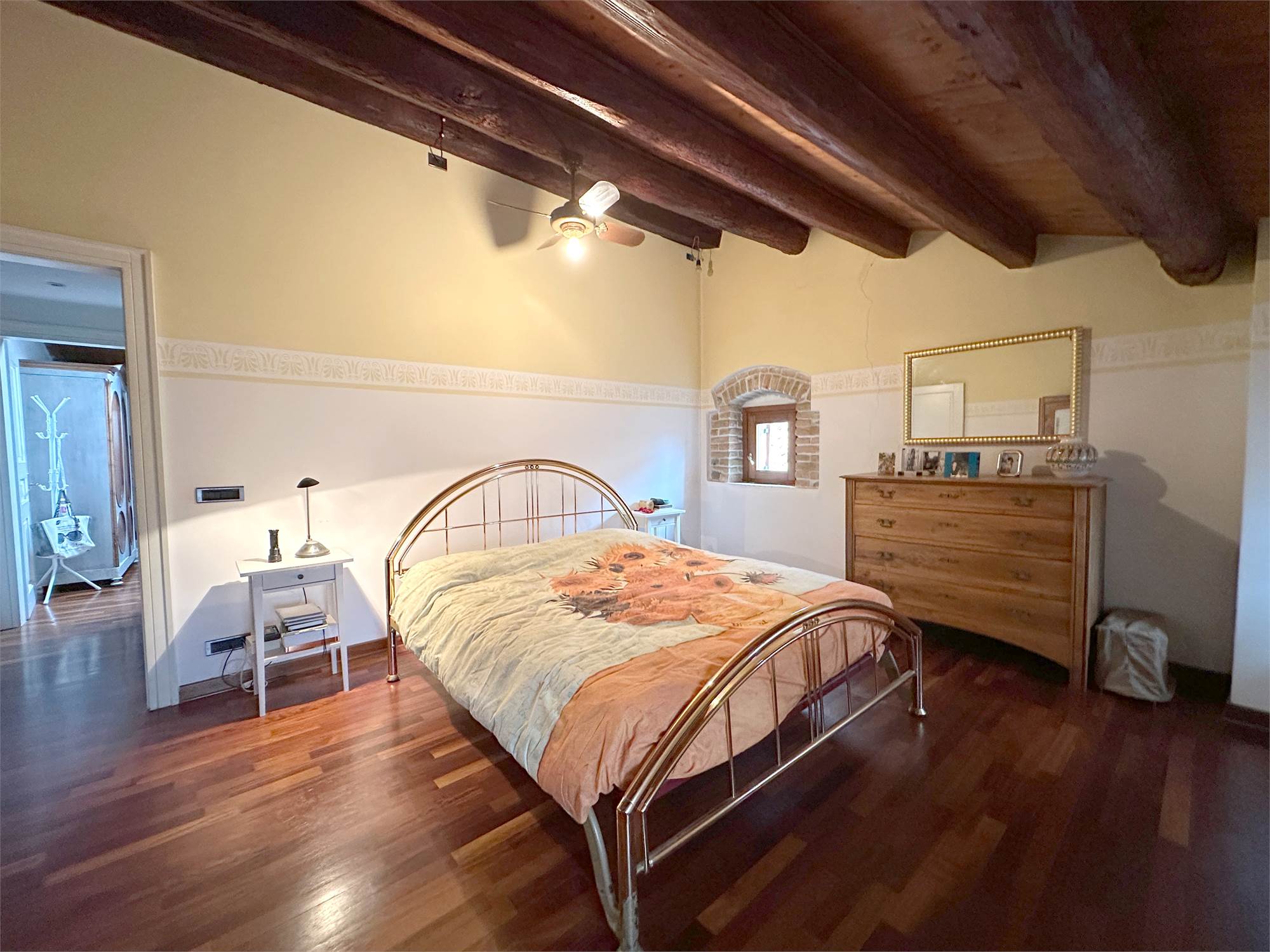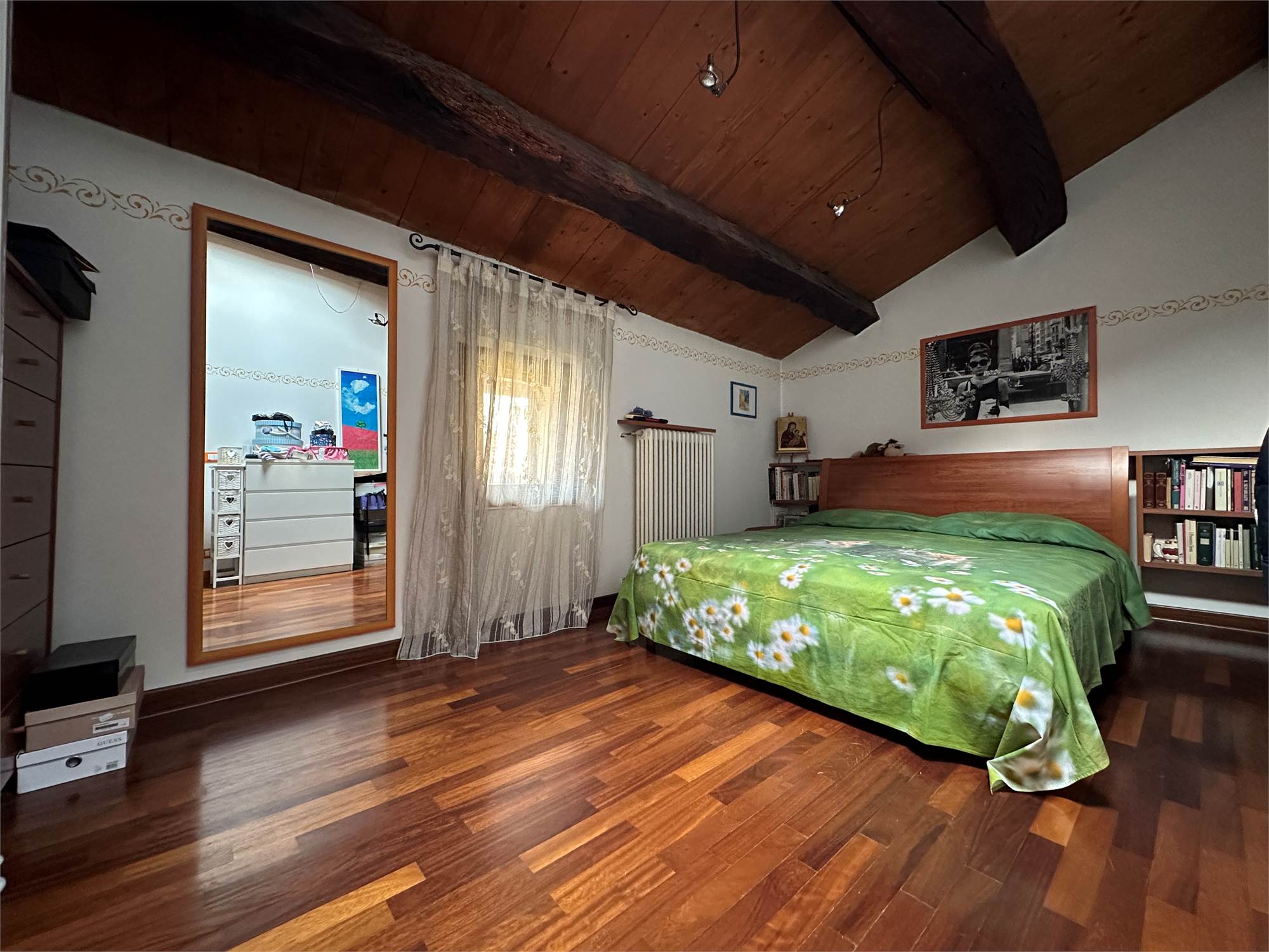 Al piano secondo/mansarda, due camere matrimoniali di cui una con cabina armadio, un bagno con vasca e un ampio salone da poter adibire a piacere o creare ulteriori due camere.