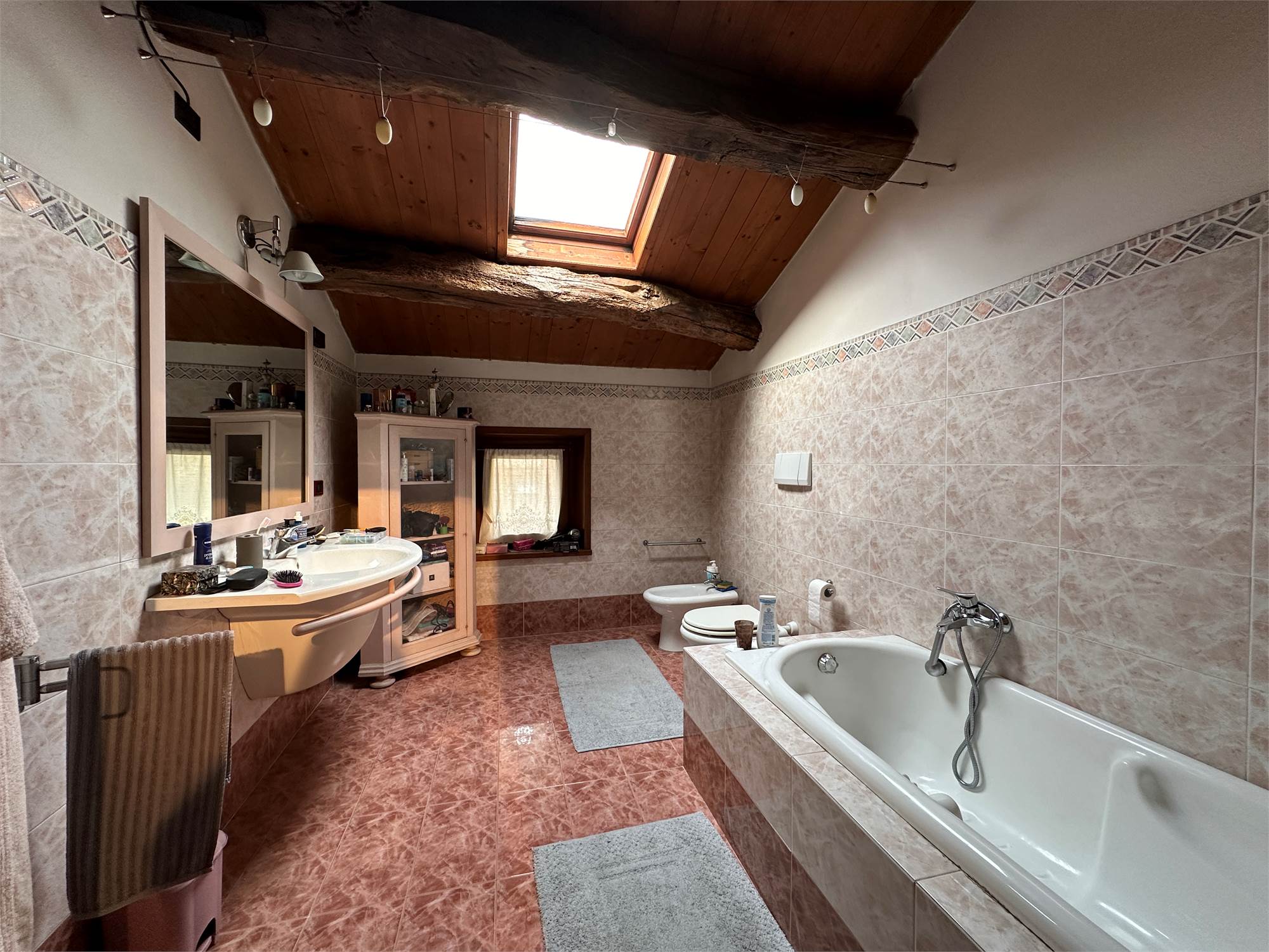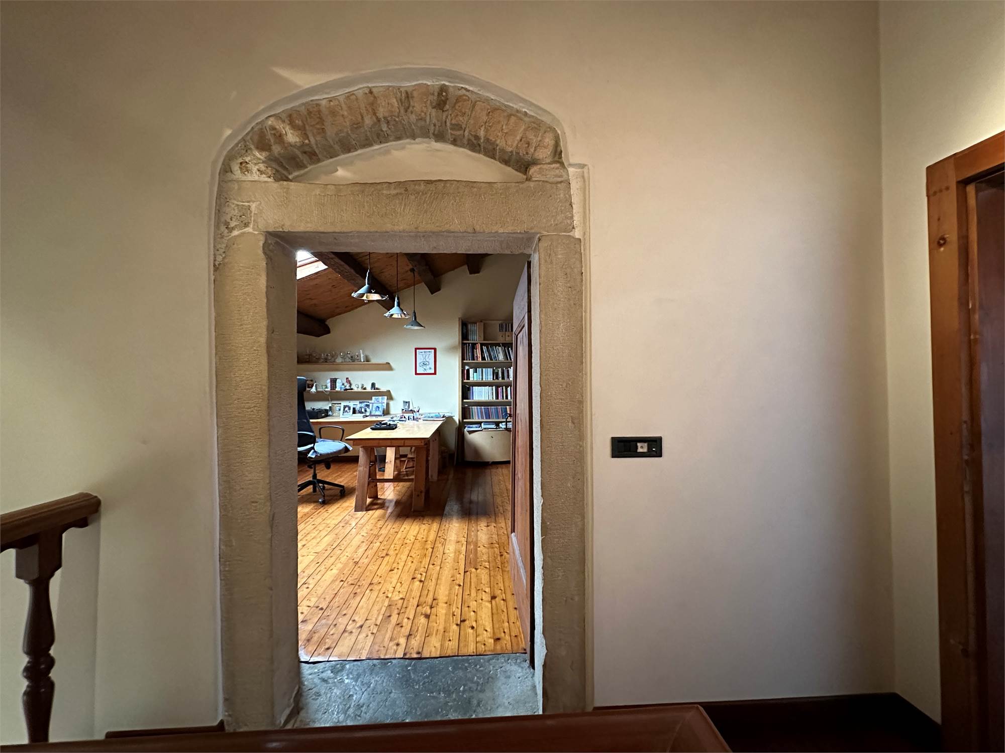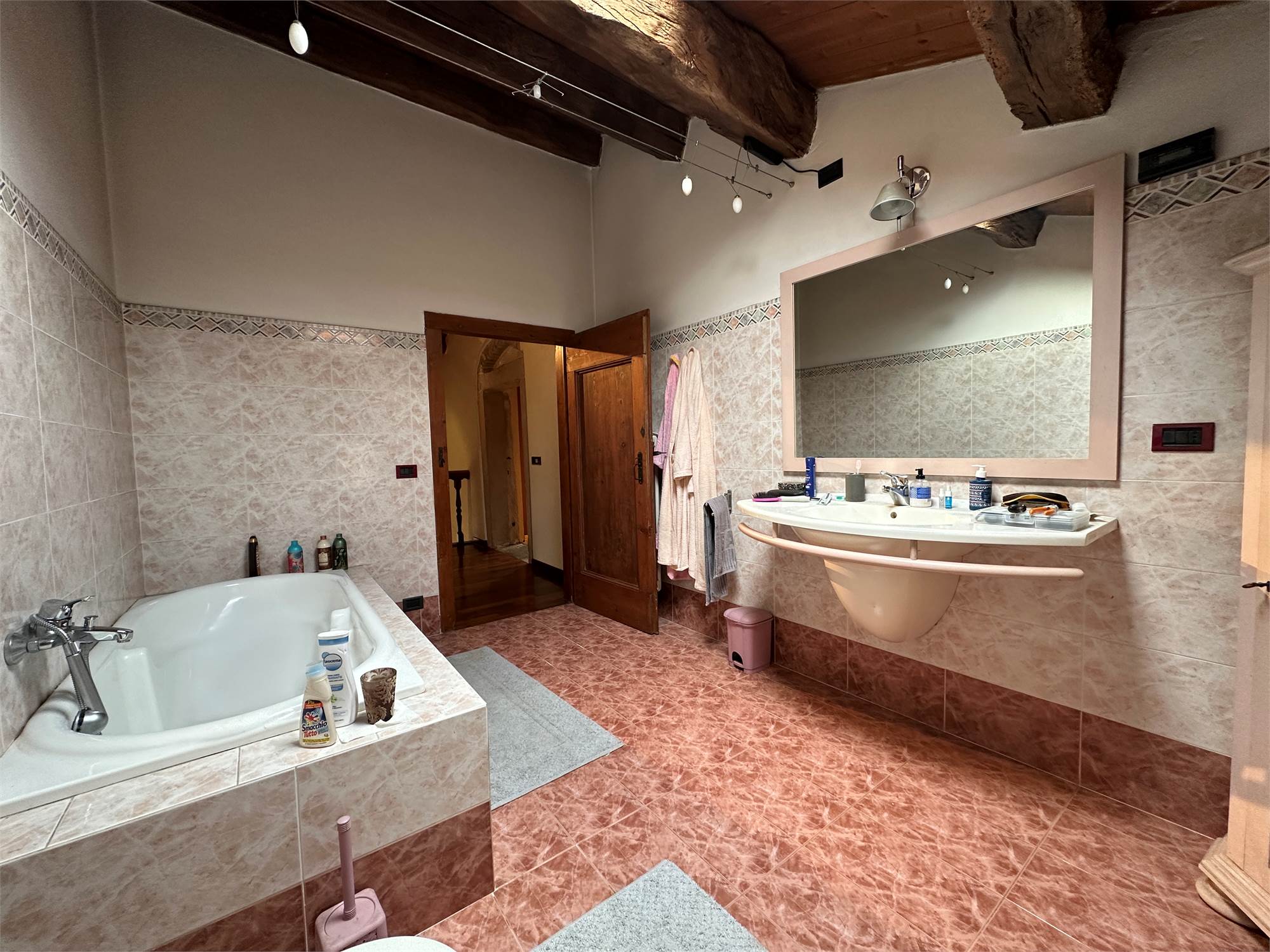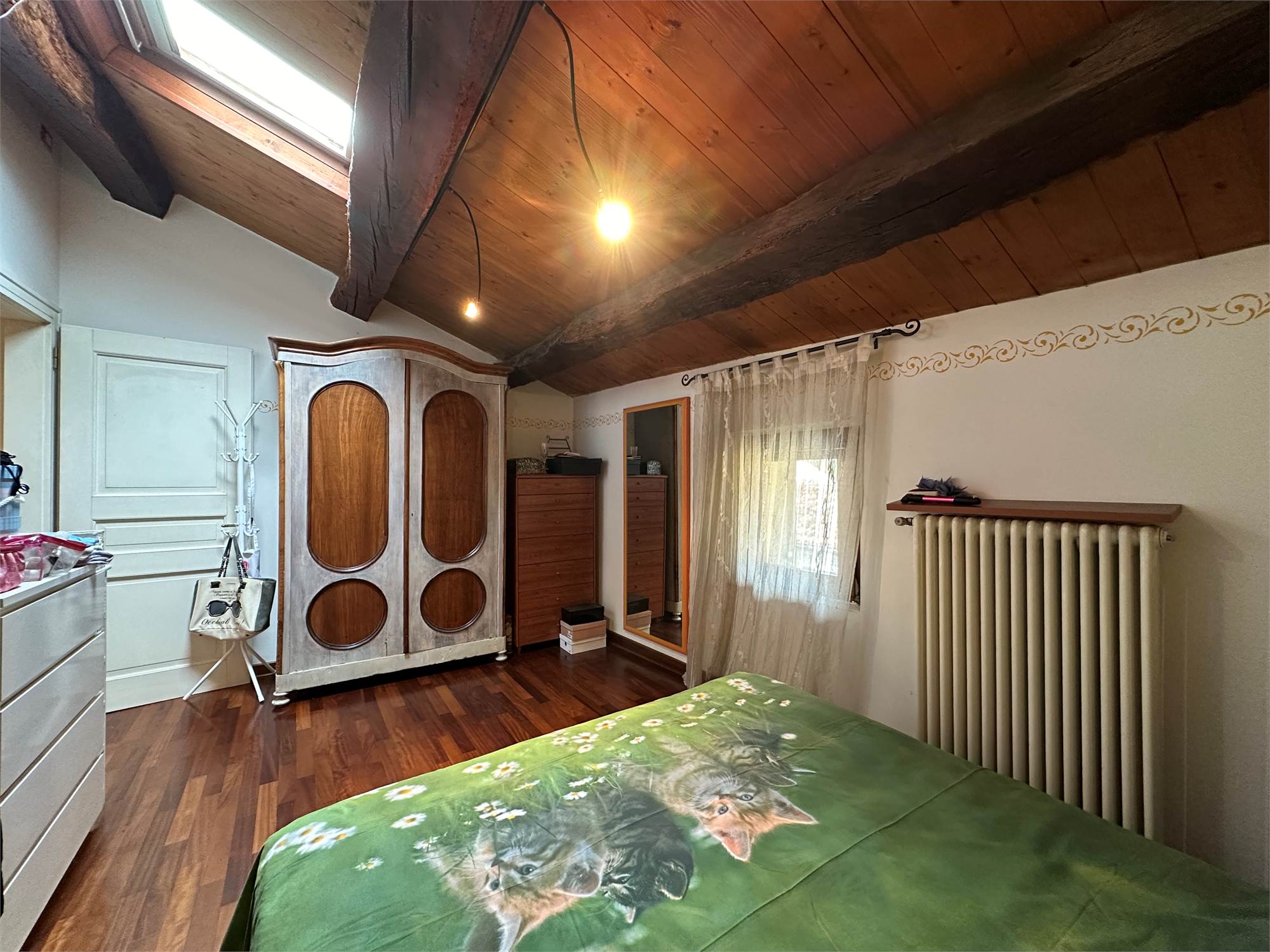 Al piano secondo/mansarda, due camere matrimoniali di cui una con cabina armadio, un bagno con vasca e un ampio salone da poter adibire a piacere o creare ulteriori due camere.